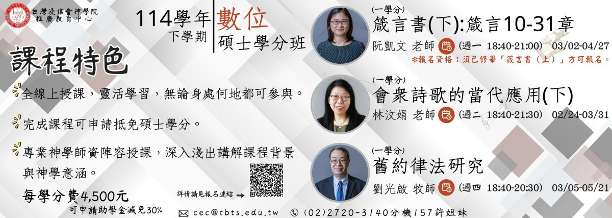 基督教台灣浸會神學院-推廣教育中心114(下)【數位碩士學分班】